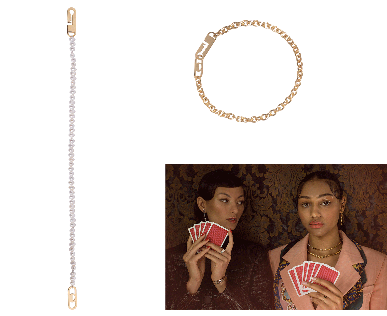 Sowohl einzeln, als auch in Kombination – die Schmuckstücke dieser Kollektion möchten eine Geschichte über spielerische Leichtigkeit, Eleganz und das Gefühl von Verbundenheit erzählen.zusammenfügen? Wie verbinden wir uns beim Spiel?